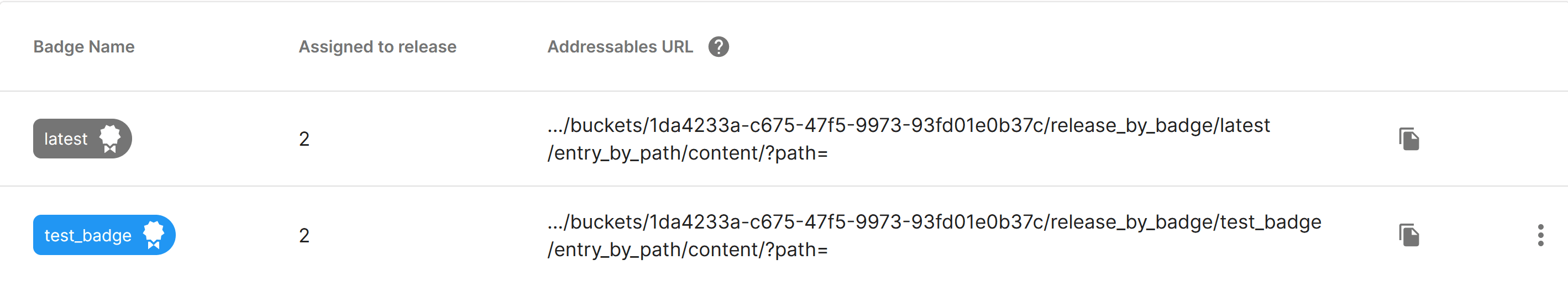 A release can also have a unique identifier associated with it, called a badge. Give this badge a meaningful name, then use it to query content, and move it between releases to add flexibility to your workflow.