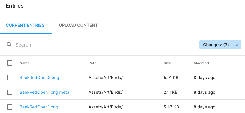 Uploading entries to a bucket pushes a local folder’s contents to the remote bucket, which automatically adds, updates, and deletes contents in the bucket, as necessary. CCD supports entries of many file types, the most popular being .gzip, .txt and .bundle (AssetBundles).